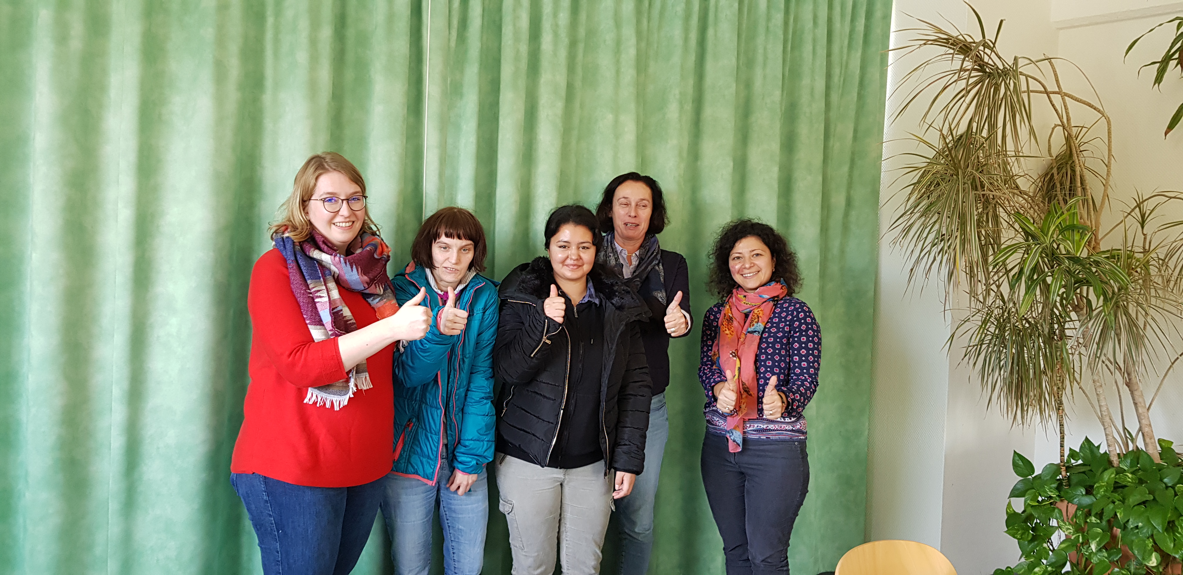 - Anica Welz, Heidi Schumacher, Susan Bystrzinski, Uta Sessinghaus, Monique Page, Susanne Müller, Laura Hillenbrand und Matthias Östreicherim Austausch mit der Kreisverwaltung Mainz-Bingen, dem Jobcenter Mainz-Bingen und dem REWE-Markt Ockenheim, wo sich aus diesem Aktionstag sogar die Chance eines mehrwöchigen Praktikums eröffnet hat.